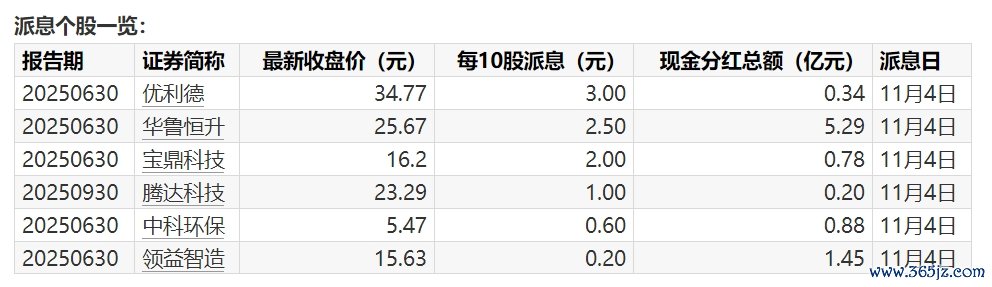 A股分红派息转增一览(11月3日):6股今日股权登记汇通资管A股分红派息转增一览(11月3日):6股今日股权登记