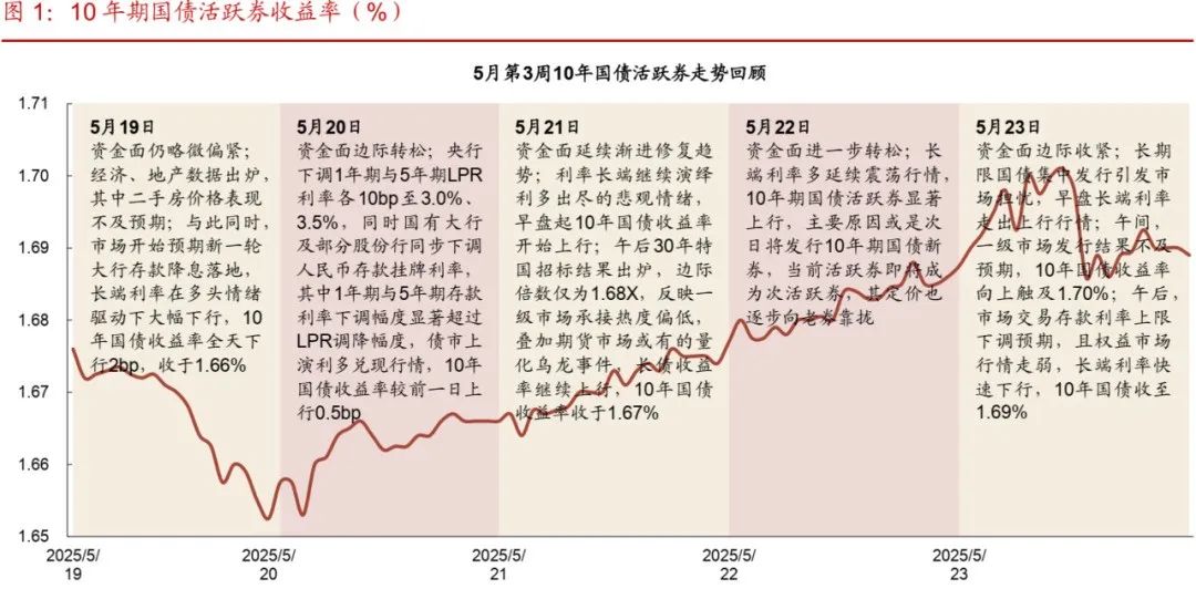 5月末及6月初,债市或仍处于等待利率下行的阶段,由于供需矛盾将改善的预期,如果叠加跨月资金面平稳,市场风险偏好下降,债市或有小波段下行行情。因而策略层面,3-5年信用债打底,长久期利率债做波段。10年国债的震荡区间1.6%-1.7%,接近1.7%的时候,越调越买,逆向做波段。